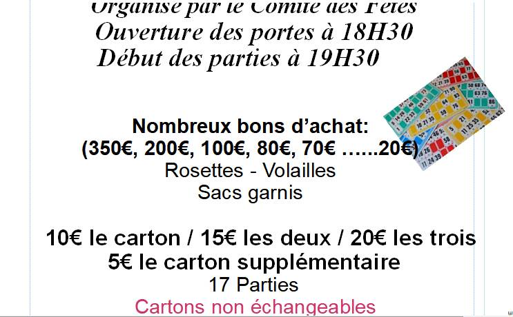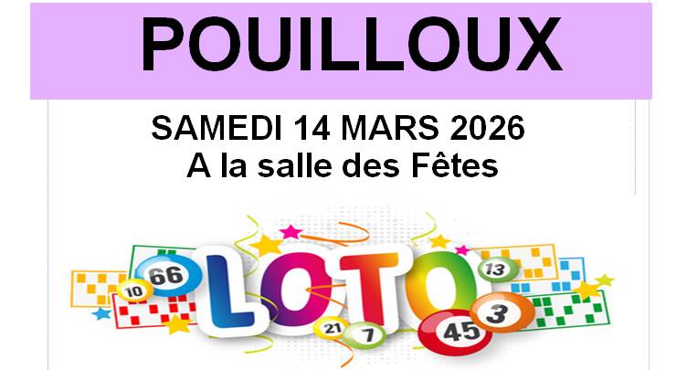 Le comité des fêtes de Pouilloux organise un loto le samedi 14 mars 2026 à la salle des fêtes de Pouilloux.
