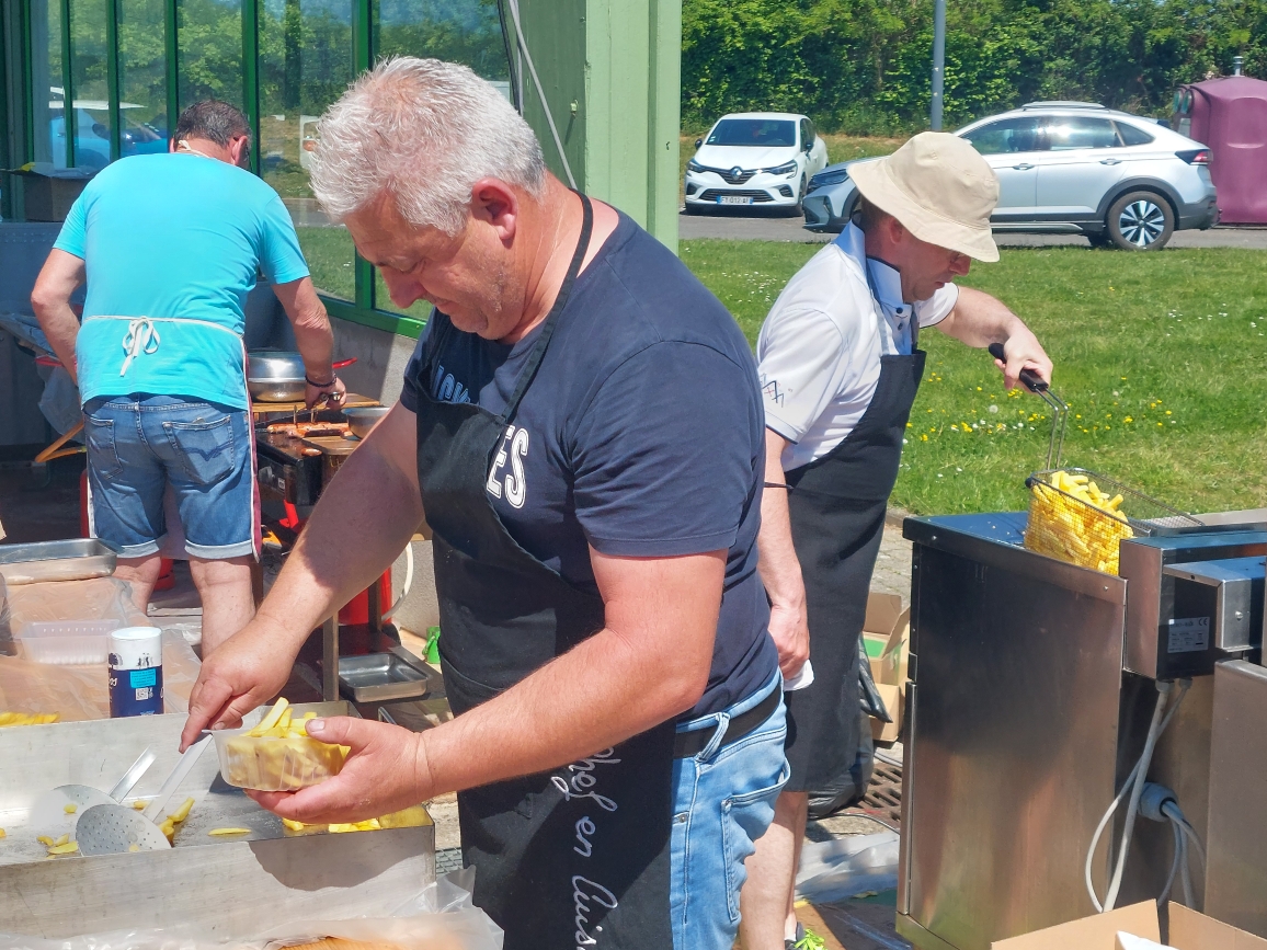 Même pour se restaurer sous le préau de la salle des fêtes, ça bouchonnait. A midi, 230 andouillettes avaient rassasié les premiers arrivés et 100 kg de frites avaient pris leur bain dans une huile à bonne température.
