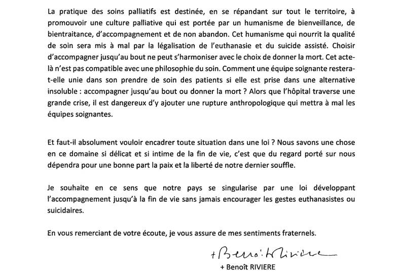 Dans ce débat sensible, Mgr Rivière souhaite rappeler l’importance du respect inconditionnel de toute vie humaine et en soulignant le rôle essentiel des soins palliatifs, seuls capables de soulager la souffrance tout en accompagnant la personne jusqu’au bout.