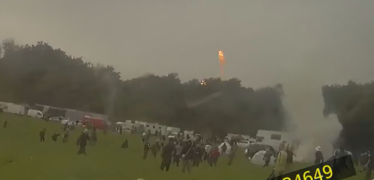 La progression des militaires dans la clairière en direction de la zone de sonorisation se fait, pendant une durée de 20 à 25 min, sous une pluie de projectiles (bouteilles en verre, pierres, morceaux de bois, cocktails Molotov, bombes agricoles, tirs de mortier).