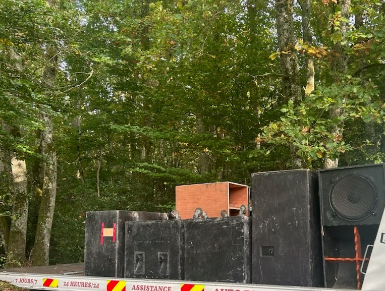 saisie et à l’évacuation de 10 caissons amplificateurs de son et d’une remorque équipée d’un groupe électrogène.