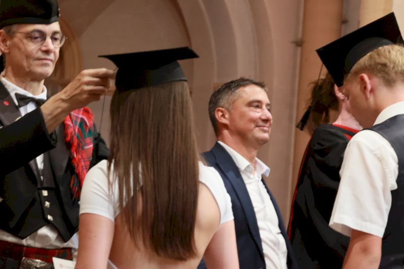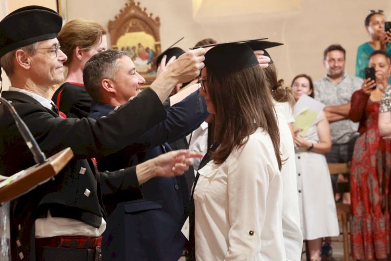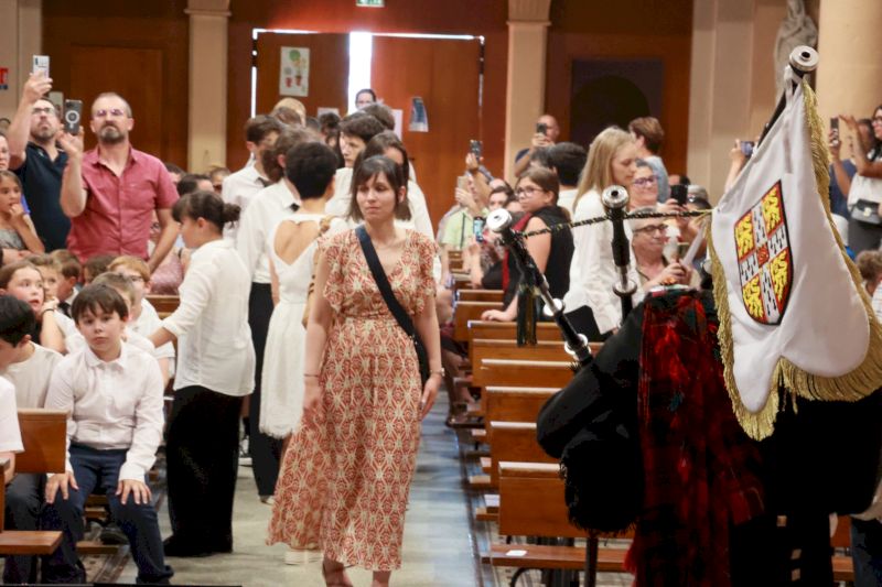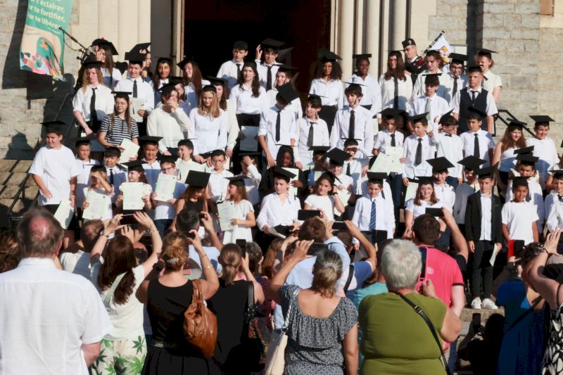 Amy Bracknall, qui arrive de Sheffield du comté du Yorkshire dans le nord de l’Angleterre, manie excellemment le français avec l’accent et l’humour avec brio. Dans l’église Notre Dame de Montceau-les-Mines _ toujours dans une église pour respecter la tradition de Cambridge, vieille de 800 ans _ où les élèves de CM2 de l’école des Oiseaux (40) et de 3e du collège Saint-Gilbert (29) qui ont obtenu leur certification d’anglais, ils ont reçu leur diplôme et le traditionnel chapeau non sans avoir écouté attentivement les paroles d’Amy Bracknall. Des paroles que les élèves ont apprécié et compris inévitablement.