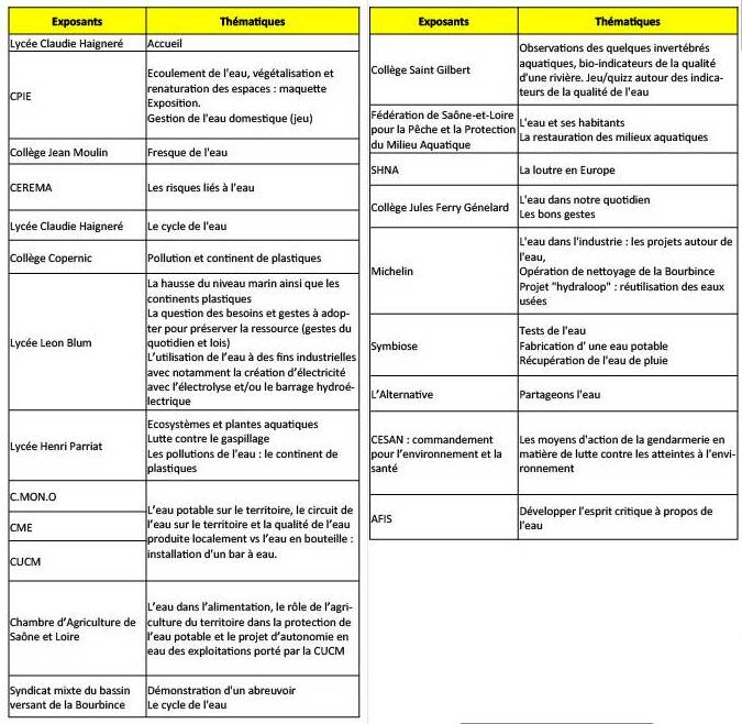 A travers les stands sur la gestion domestique de l’eau, les travaux réalisés par les lycées Haigneré (Blanzy), Parriat (Montceau) ou le collège Léon Blum (Le Creusot), les élèves ont démontré que nous devons être plus vigilants sur la manière dont nous utilisons l’eau ou nous traitons nos déchets. Les produits chimiques, les plastiques, et autres polluants (collège Copernic) finissent souvent dans les rivières et les océans, où ils causent des ravages sur la faune et la flore aquatiques (collège Saint Gilbert). Le recyclage, l’utilisation de produits moins polluants et la réduction des déchets plastiques sont des actions importantes.