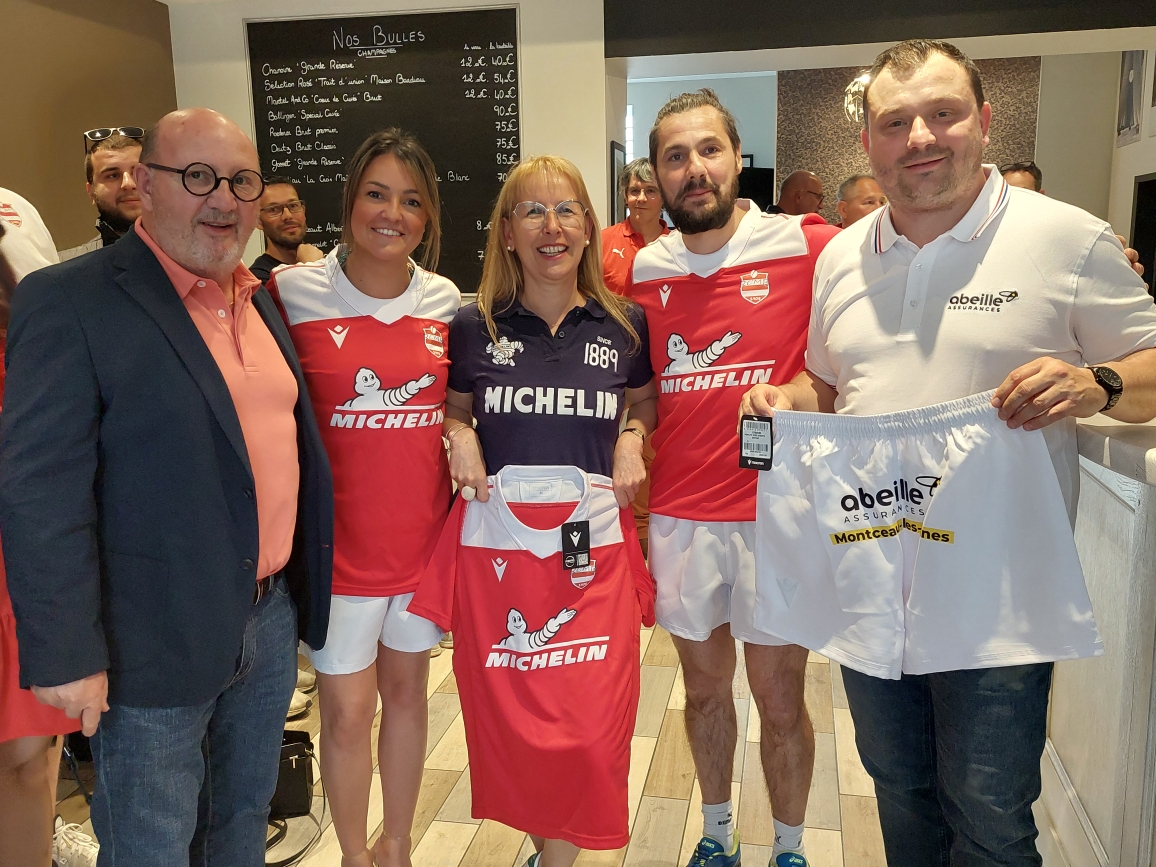 La remise des équipement s’est déroulée au restaurant Le Bis, rue Carnot à Montceau-les-Mines où le parton, Manu _ partenaire du RCMB _ a accueilli dans son costume d’apparat, celles et ceux qui porteront avec fierté leur nouvelle tenue, en présence de Françoise France, RH Michelin et le trio d’Abeille assurances, Catherine Boyer, Nicolas Febvre et Sébastien Tastevin.