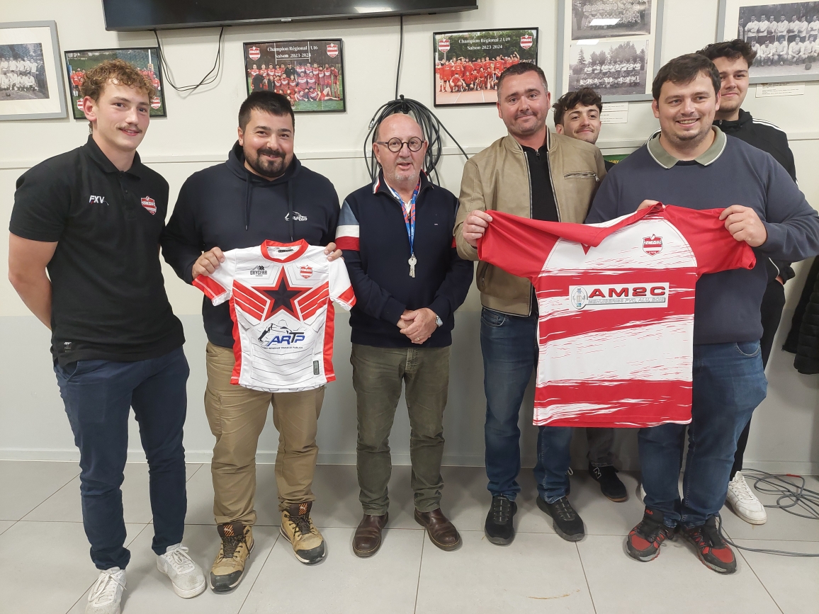 Même si le RCMB peut compter sur de nombreux partenaires, certains s’investissent tout particulièrement en faveur des enfants. C’est le cas des sociétés AM2C et ARTP, qui ont décidé d’offrir des maillots, respectivement aux U14 et à l’école de rugby. Il n’en fallait pas davantage pour organiser une cérémonie au siège du club, où le président, Jacky Rozier, a rappelé l’importance « d’avoir de beaux maillots pour offrir de belles victoires ».