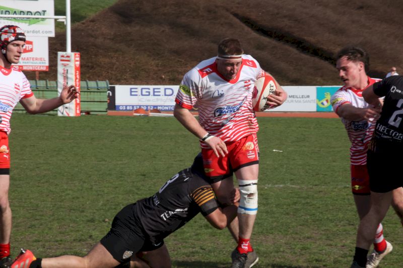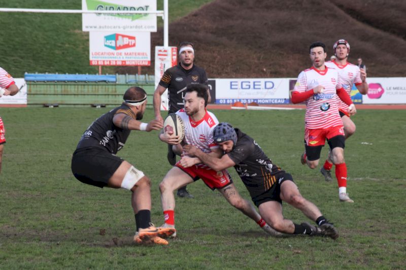 Dans une rencontre décousue, le suspense restera entier en seconde période. Annecy-le-Vieux inscrivait un essai en force (49e, 17 – 13), Montceau répondait aussi par ses avants et un essai de Yannick Chaumont (52e, 24 – 13). Annecy aurait même pu entrevoir une victoire après une pénalité (58e) et un essai toujours en force (70e) et revenir à trois points des Montcelliens (21 – 24).