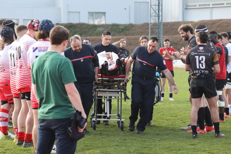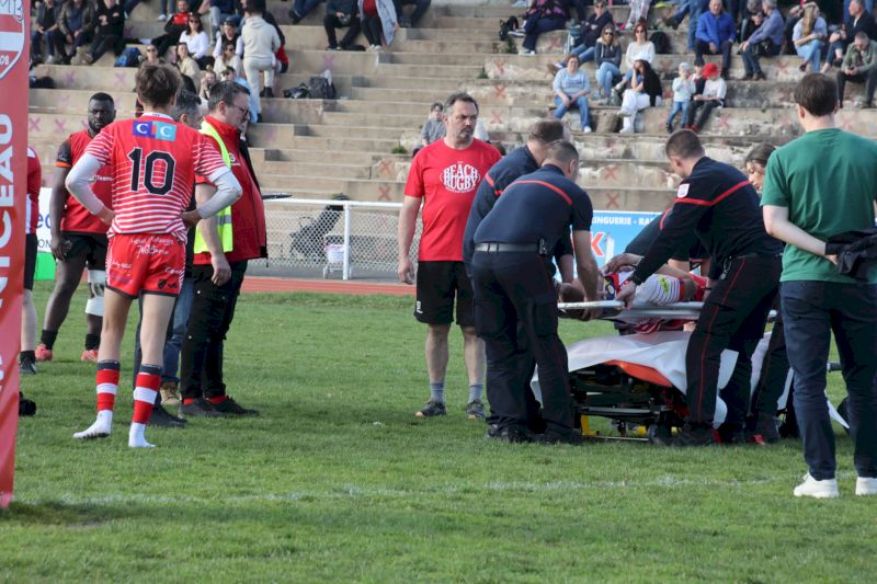 Puis grosse inquiétude à la 21e minute de jeu quand Alexis Baudin, victime d’un choc à la tempe, s’écroulait et perdait connaissance quelques instants. Immédiatement l’arbitre arrêta la rencontre. Elle reprenait après l’intervention des sapeurs-pompiers.