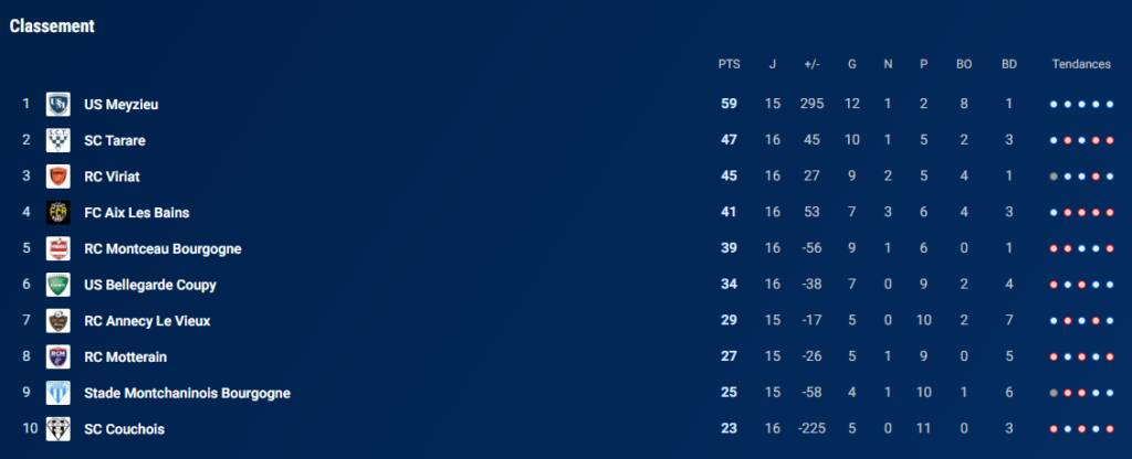 Dans ce championnat de Régionale 3, à l’issue de la saison régulière (il reste deux journées), les trois premiers sont qualifiés pour les phases finales, le quatrième et cinquième disputeront les barrages.