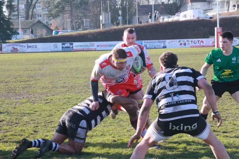 Il fallut une étincelle du trio Genieux-Bréchet-Desbrosses (55e) pour replacer le RCMB dans une position plus confortable, avec un essai d’Antoine Desbrosses transformé par Hugo Genieux (21-14).