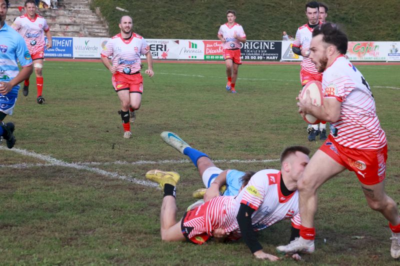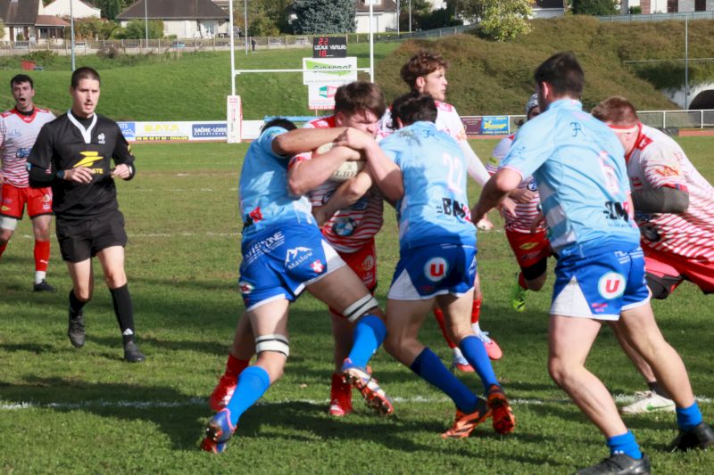 Les visiteurs ne baissèrent jamais les bras et profitèrent même d’un certain laxisme des locaux. Les joueurs à Croix de Savoie surent en profiter. Une pénalité rebondissait sur le poteau, ils récupéraient le ballon, enchaînaient, bénéficiaient encore d’une pénalité, la jouaient vite et trompaient la vigilance des Rouge et Blanc. Les Savoyards dépossédaient Montceau du bonus offensif qui semblait leur tendre les bras.