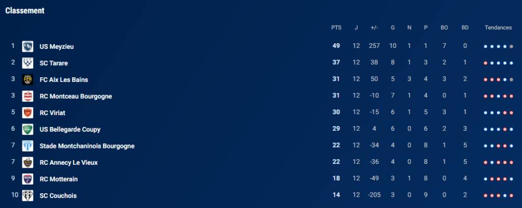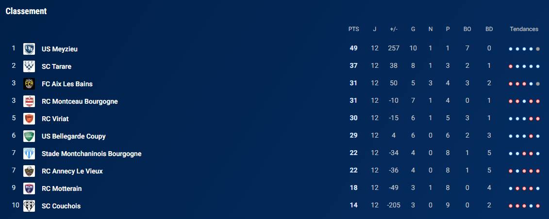 FC Aix-les-Bains 25 – US Bellegarde 27