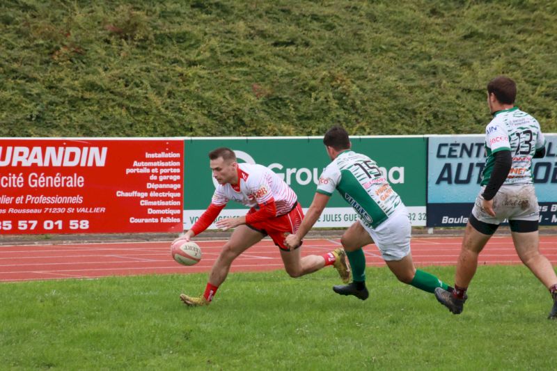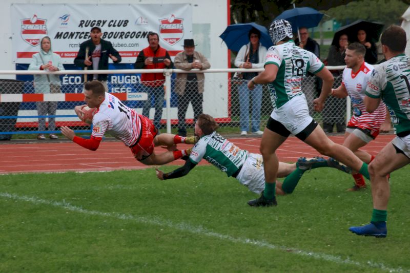 A l’issue des 80 minutes de jeu, Montceau s’est imposé sur le score de 17 à 9 avec deux essais à la clé inscrits en première période. Deux essais presque identiques, mêlée d’un côté, on ouvre un grand et on marque en bout de ligne, le premier par l’ineffable Antoine Desbrosses (10e), le second par Léo Brachet (27e), une des nouvelles recrues.