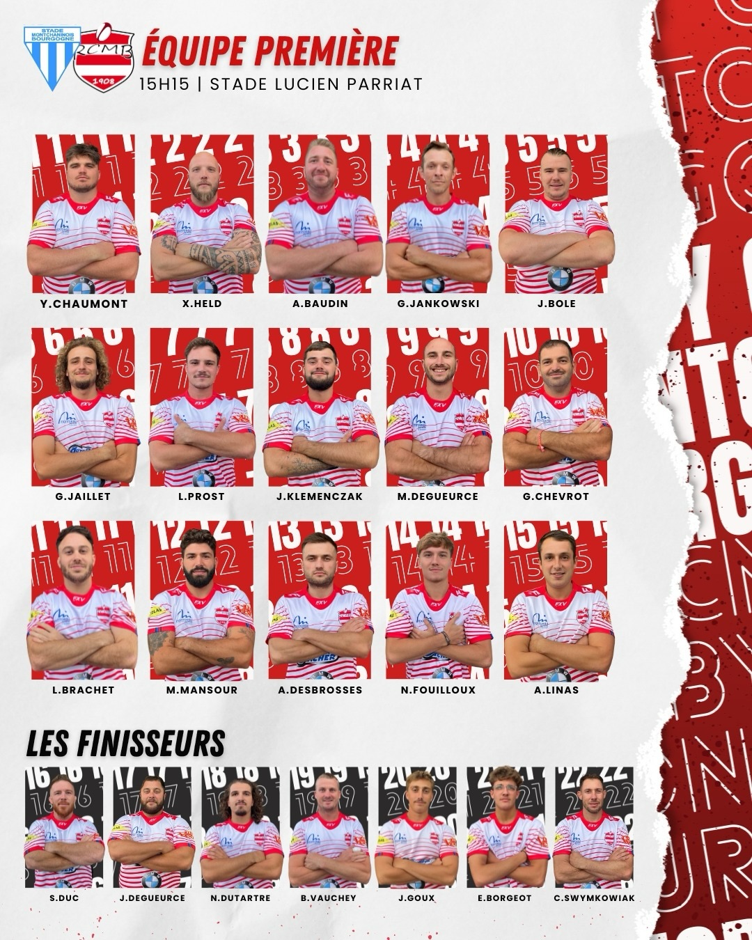 Bonne nouvelle du côté montcellien : le retour en deuxième ligne de Guillaume Jankowski, qui sera associé à Jules Bole. En revanche, toujours pas de Hugo Genieux à l’horizon, il ne devrait pas revenir avant 2026.