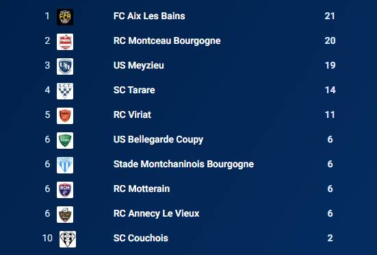 Toutefois, les Montcelliens n’occupent pas la première place au classement, ils sont juste derrière à un point d’Aix-les-Bains qui compte un match nul mais trois bonus offensifs contre aucun au RCMB. C’est ce qui fait la différence au classement.