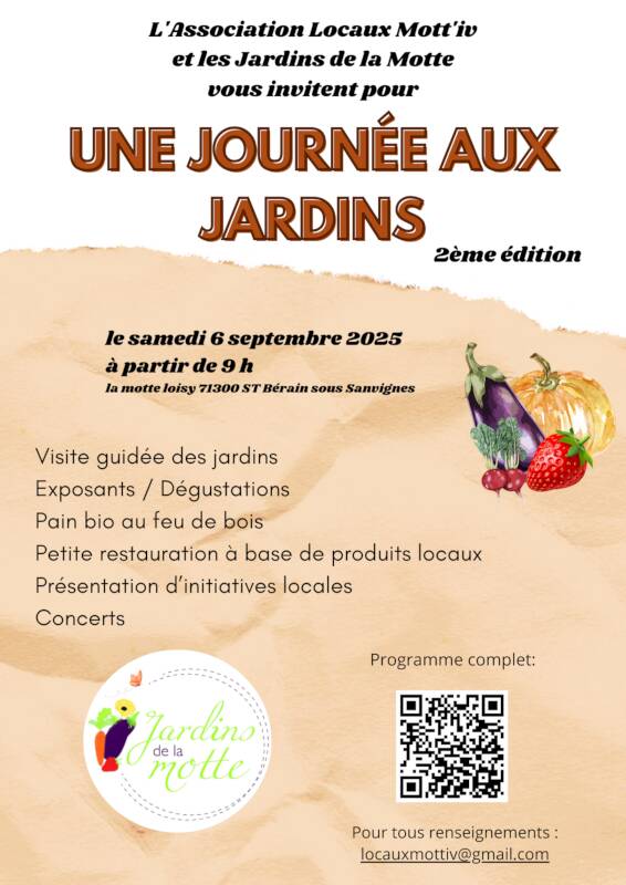 L’association Locaux mott’IV de Saint-Berain-sous-Sanvignes, organise sa deuxième « journée aux jardins » ce samedi 6 septembre 2025 aux jardins de la Motte à partir de 9h, avec exposants, visites et animations.