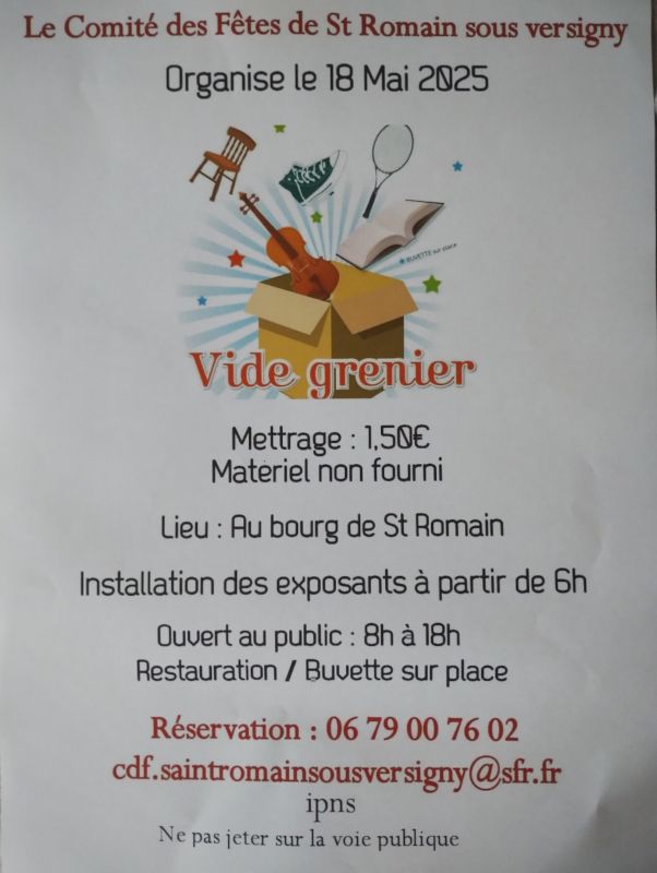 Pas très éloigné de Perrecy-les-Forges, le village de Saint-Romain-sous-Versigny va vivre dimanche 18 mai au rythme de son vide-greniers organisé par le comité des fêtes qui se déroulera au bourg.
