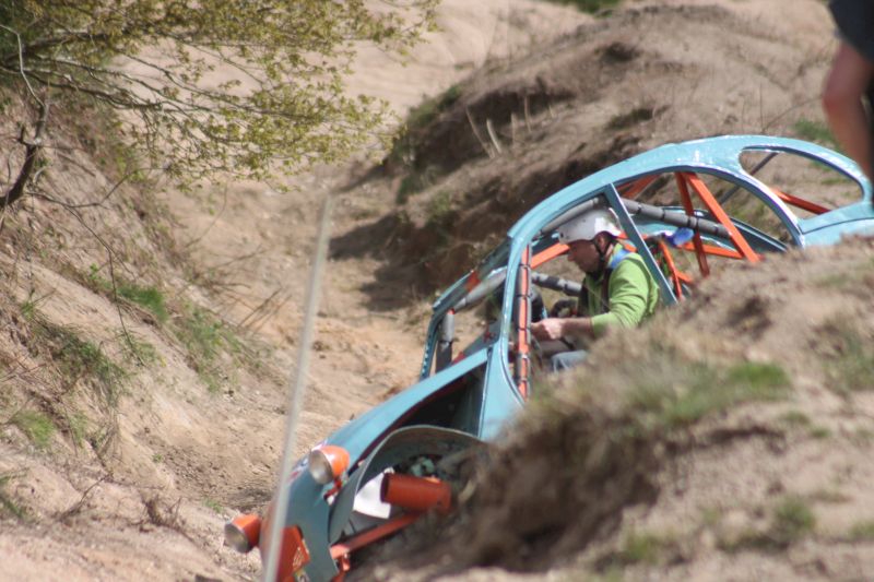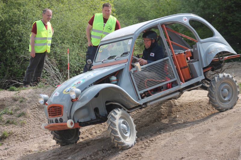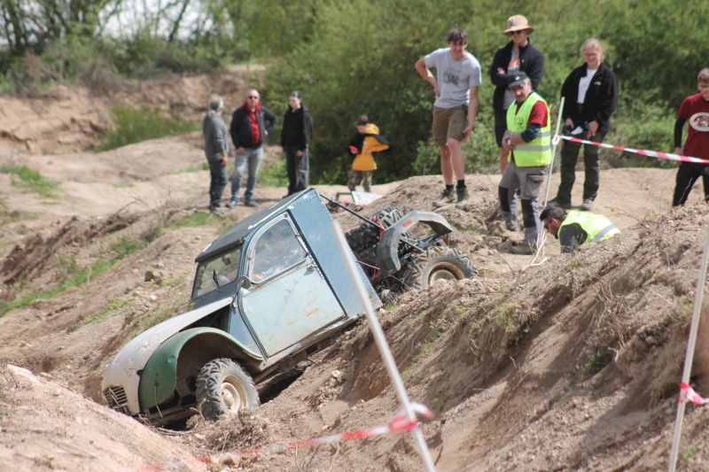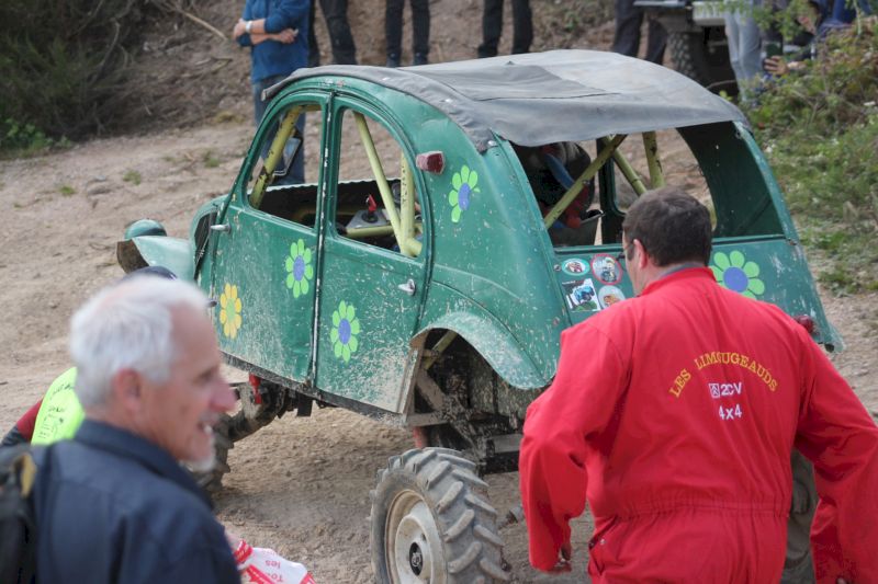 La 2 CV est vraiment une voiture formidable. Sa mécanique est d’une grande simplicité mais mettez-là sur un terrain accidenté, voire complètement défoncé et elle prête à faire des miracles. Il faut dire que les pilotes ont fait en sorte que leur deudeuche _ après beaucoup de mécanique _ arrive à se faufiler partout. Et quand on connaît le terrain des Combes Grondées à Saint-Symphorien-de-Marmagne, il est nécessaire d’avoir le véhicule qui s’y prête et du doigté dans le pilotage.