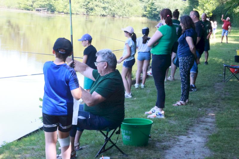Malgré la chaleur, les « élèves pêcheurs » ont profité du cadre de l’étang de la Garenne pour prendre une première leçon. Les 42 enfants de Marie Curie aux Gautherets n’ont pas longtemps à comprendre comment prendre du poisson et même une écrevisse.