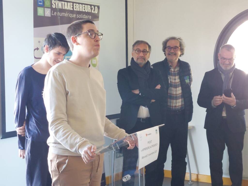 La semaine dernière, Gilles Prost, président de l’Association Syntaxe Erreur 2.0 et Cyprien Mateos, délégué régional Orange en Bourgogne- Franche-Comté ont présenté l’action “ APPRENDRE AUTREMENT ” soutenue par la Fondation Orange et animée par le FabLab de Syntaxe Erreur 2.0.