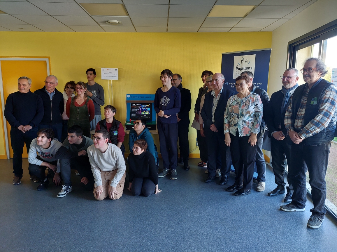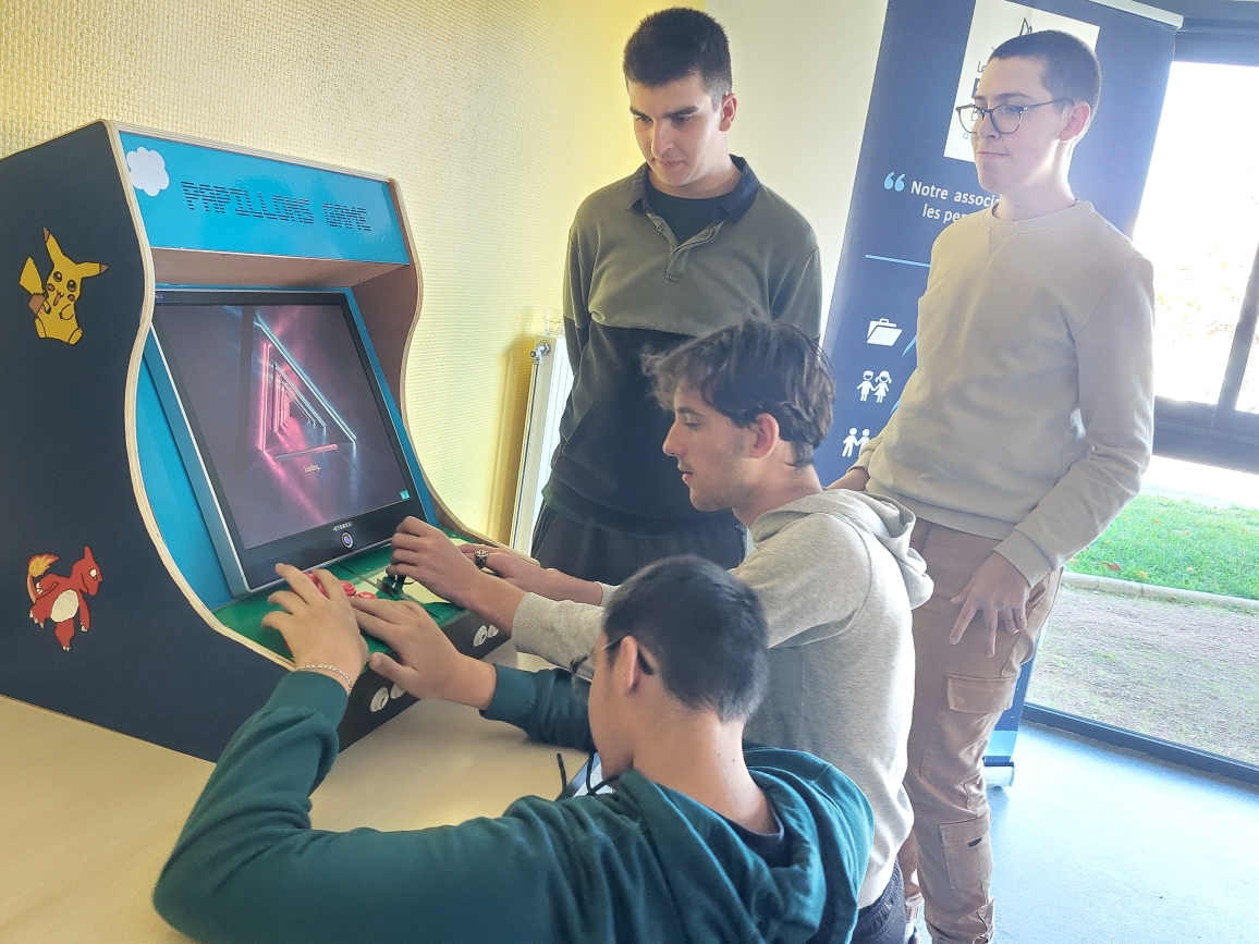 Inclusion et Innovation : une borne d’arcade pour les jeunes de l’IME les Papillons Blancs d’entre Saône et Loire à Saint-Vallier. Le fruit dur travail de huit jeunes de 16 à 19 ans atteints de trouble du comportement. Ils ont adoré et ça marche !