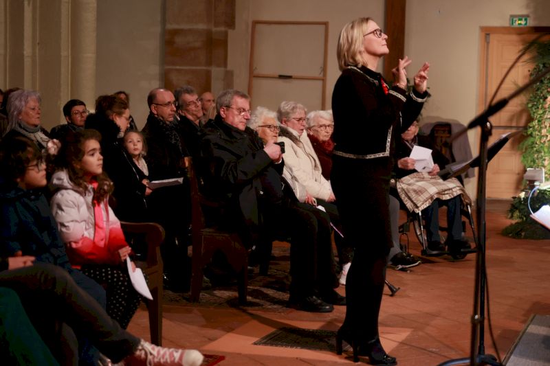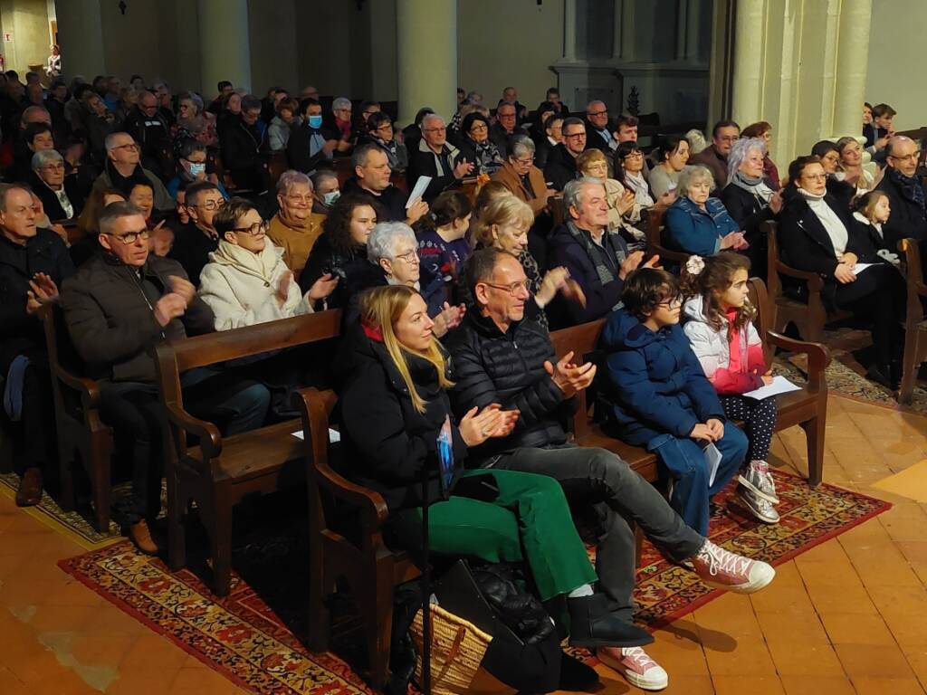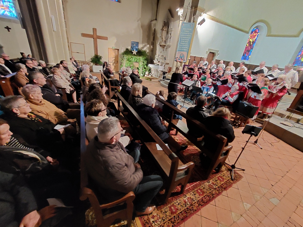 Tout a commencé avec « Les bergers sont arrivés à Bethléem, jouant de la lyre », ouvrant ce doux après-midi sur une note à la fois solennelle et joyeuse. Les voix se sont ensuite mêlées à la douceur hivernale de « Tombe la neige », avant d’inviter petits et grands à la tendresse avec « Fais dodo, petit Jésus ». Moment de recueillement et d’unité, « Douce nuit, Sainte Nuit » a également résonné sous les voûtes de l’église, touchant les cœurs par sa simplicité et sa profondeur.