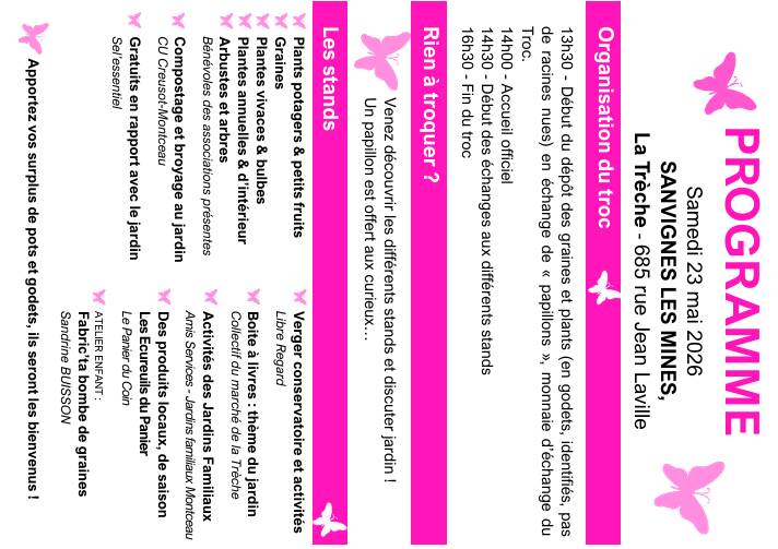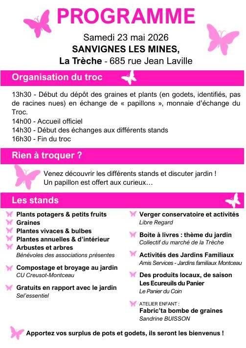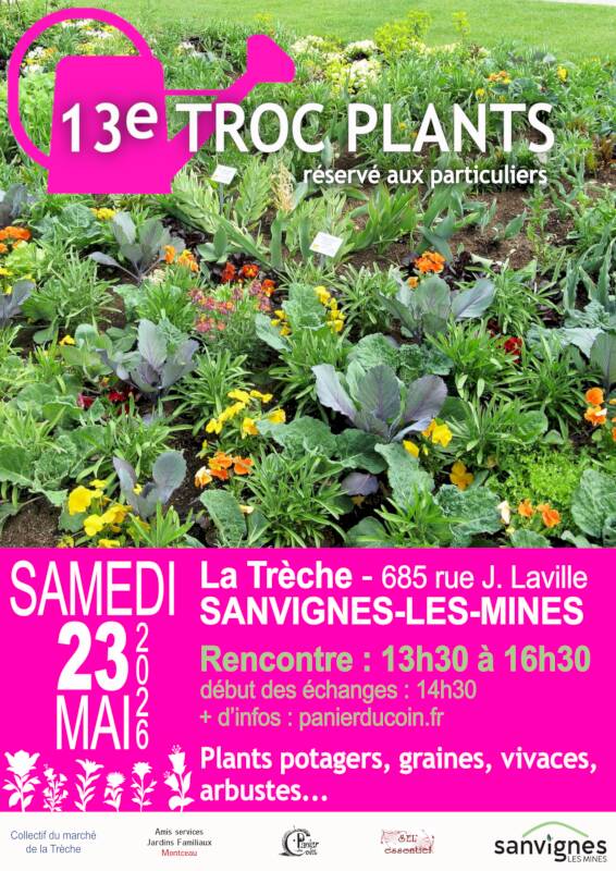 Le 13e troc plants réservé aux particuliers aura, comme l’an dernier, à la Trèche de Sanvignes, samedi 23 mai 2026 de 13h30 à 16h30.