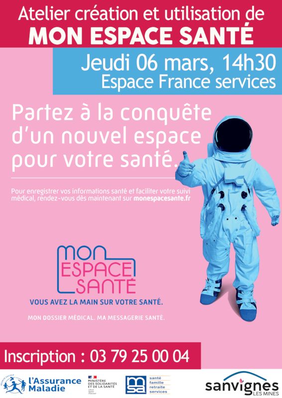 Il ne s’agit pas d’enfiler une combinaison d’astronaute mais de participer à un atelier création et utilisation de « Mon espace santé », jeudi 6 mats 2025 à l’espace France services à Sanvignes à 14h30.