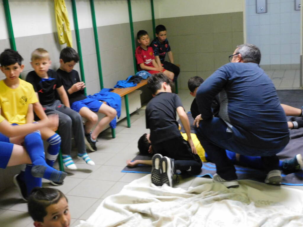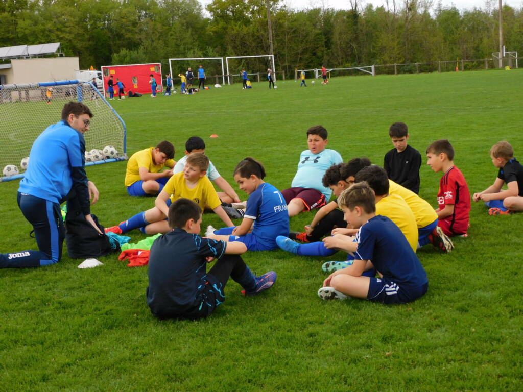 Depuis mardi, ils sont trente-sept enfants essentiellement du club de Sanvignes (deux sont de Saint-Vallier) à suivre le matin, des ateliers, notamment avec Serge Victor, ancien sapeur-pompier, sur les gestes de premiers secours, l’arbitrage avec Olivier Roitt, arbitre au CSS, Damien Melique, conseiller technique du District, prendre un cours de prévention routière en situation sur un vélo grâce à l’intervention de l’agent de police municipale de Sanvignes, suivre les recommandations de Rafaël Freniche à l’addiction aux écrans ou encore écouter attentivement les professeures des écoles mesdames Bernigaud et Lacroute et se laisser guider par Me Lazarette, sophrologue.