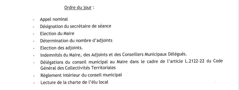 Le conseil municipal, le nouveau qui a été élu dimanche 15 mars, se réunira samedi 21 mars 2026 à 10h en mairie , salle du conseil municipal.