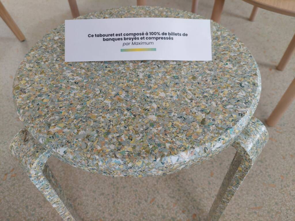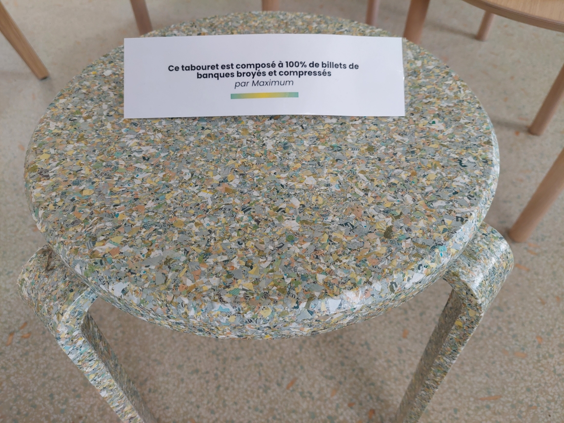Un mot sur le mobilier, il est issu à 50% de l’économie circulaire. « Nous avons même du mobilier qui vient de la ville de Gueugnon » stipule le maire. Les tabourets ont été réalisés avec des billets de banque, une belle façon de s’asseoir sur une petite fortune. Bref, tout a été fait pour favoriser l’économie locale comme la participation des entreprises qui ont profité du Plan d’accélération de la Région après la pandémie de la covid.