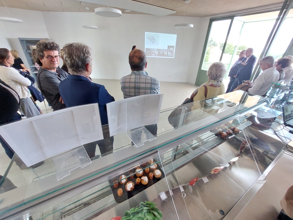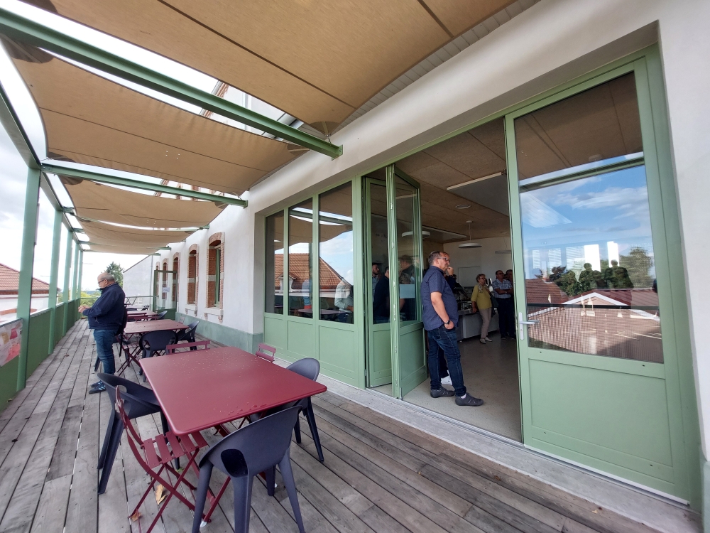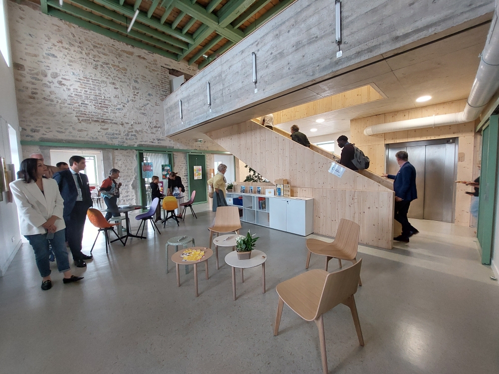 Tout a commencé en 2021 quand la municipalité a engagé la réhabilitation du Liberty. Après des études et définition du projet, les travaux ont démarré en 2022 et se sont terminés à l’automne 2024. Tout a été conçu et réalisé avec intelligence en réemployant des éléments se trouvant sur place, tout en laissant deviner l’histoire des lieux. Anne Sevin, adjointe en charge à l’urbanisme, l’habitat et du développement durable ne cache pas son plaisir de présenter le Liberty aux hôtes du jour. « Notre objectif a été de le rendre vivant pour vraiment réussir le changement pour une meilleure qualité de vie ». Ici, un bistrot, là une halle aux produits locaux pour consommer local ou encore un espace de travail partagé, un coin atelier.