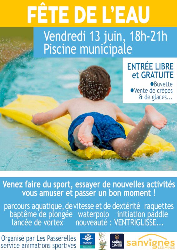 La commune de Sanvignes organise ce vendredi 13 juin 2025 la fête de l’eau à partir de 18h à la piscine municipale.
