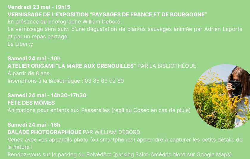 Le mieux, c’est de découvrir les animations proposées du 21 au 25 mai prochains ci-dessous :