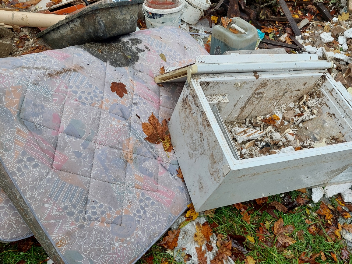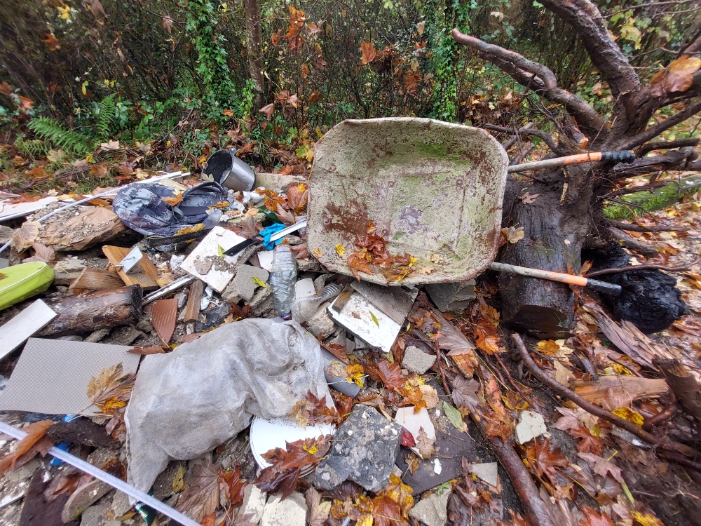Car ici, c’est une véritable poubelle à ciel ouvert : planches de bois, matelas, bouteilles, frigo, brouette, four électrique, bidons de liquide douteux, pots de peinture, briques… la liste est interminable.