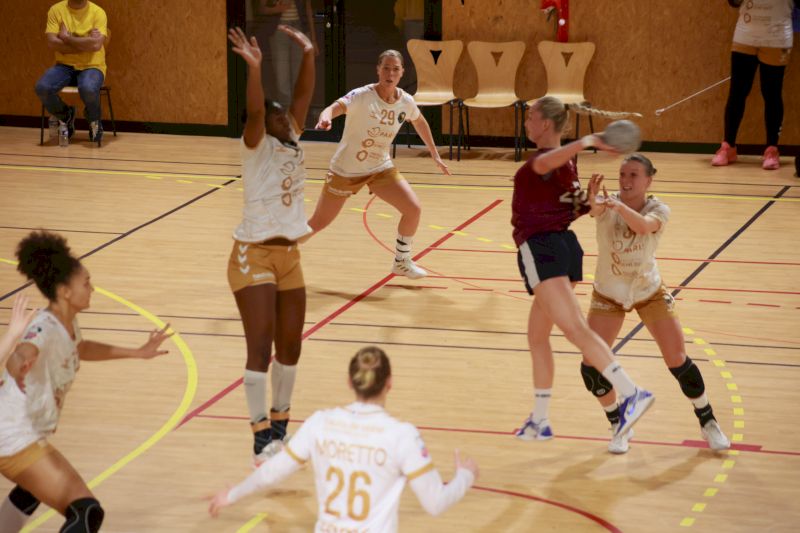 Sur le terrain, le spectacle a tenu toutes ses promesses. Les Dijonnaises se sont imposées logiquement sur le score de 27 à 25 au terme d’une rencontre intense et engagée. Si les joueuses de la Côte-d’Or ont globalement maîtrisé leur sujet, elles ont toutefois été sérieusement bousculées en seconde période par des Parisiennes déterminées, faisant trembler le public jusqu’aux dernières minutes. Un scénario haletant qui a ravi les passionnés présents.