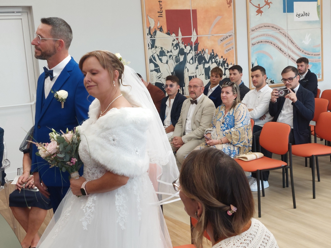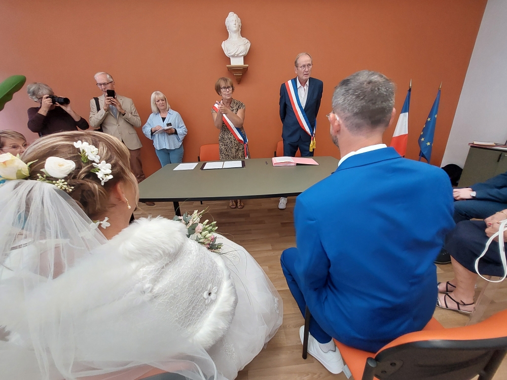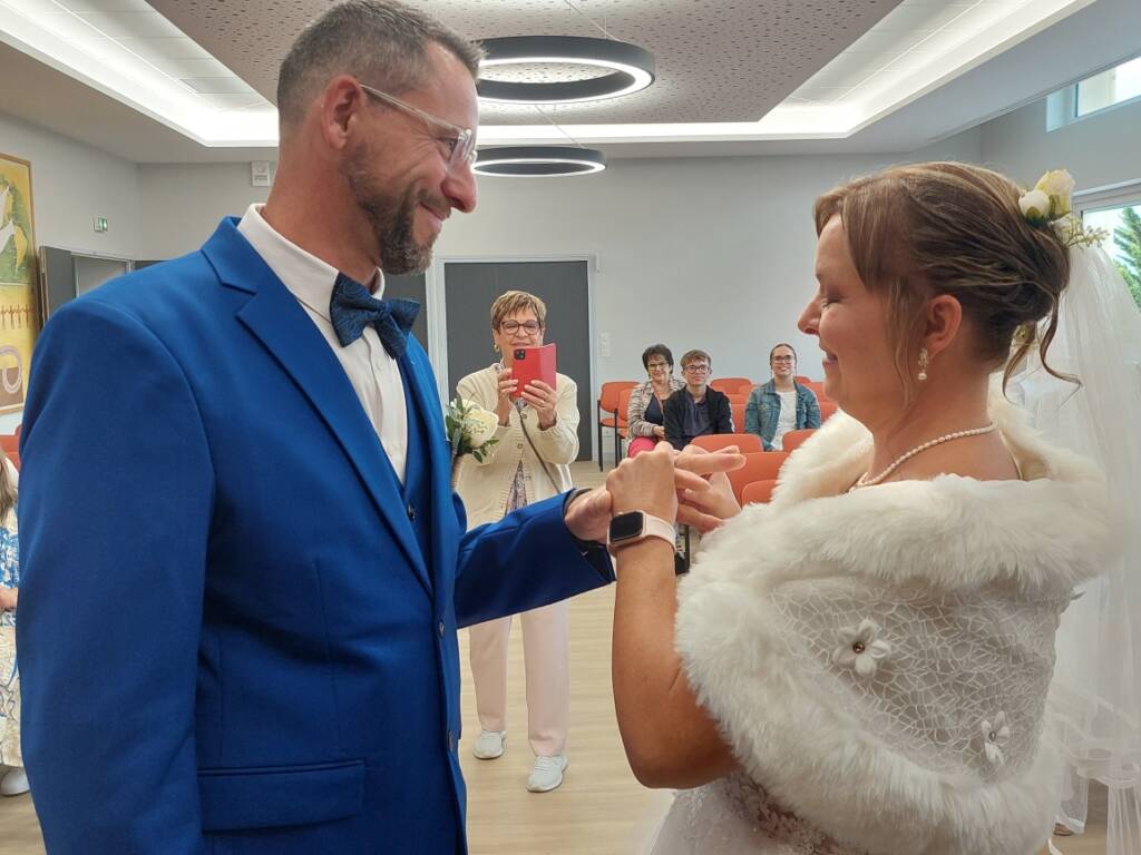 Ce samedi en fin d’après-midi, l’émotion était palpable à l’hôtel de ville de Sanvignes. Les mariés, bien sûr, mais aussi Viviane Perrin, première adjointe, ont partagé un moment d’une rare intensité. Elle avait l’immense privilège de célébrer l’union de Marie-Agnès, à qui elle a adressé quelques mots empreints de tendresse, résonnant avec justesse dans la nouvelle salle des mariages, récemment inaugurée dans une mairie entièrement rénovée et ouverte au public depuis le 1er octobre.
