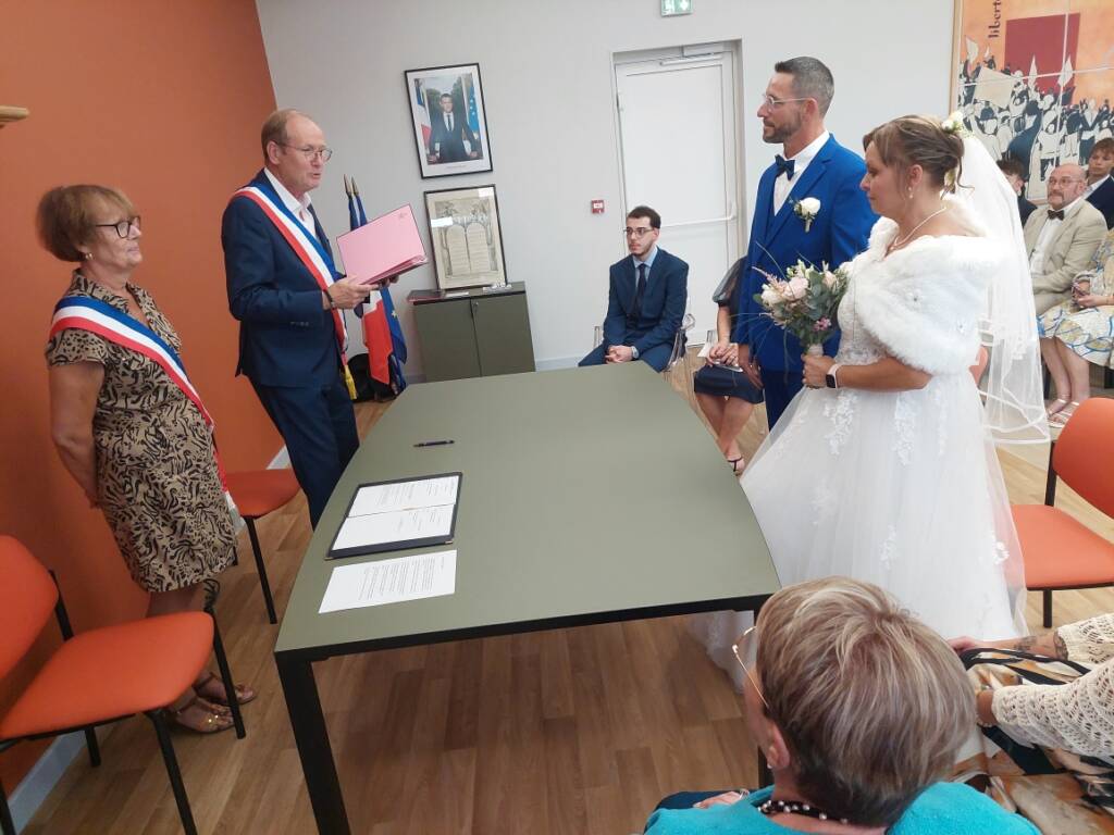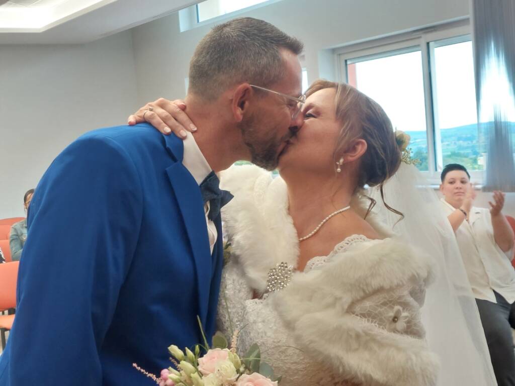 « Il n’est jamais trop tard pour croire en une nouvelle histoire d’amour et celle-ci est belle », a déclaré Viviane Perrin, émue, à l’adresse des époux. Marie-Agnès Launay, auxiliaire de vie née au Mans (Sarthe) le 15 mars 1975, a dit « oui » à Sébastien Dauvillaire, ouvrier né à Saint-Vallier le 6 avril 1978, qui lui a répondu d’un « oui » vibrant et plein de promesses.