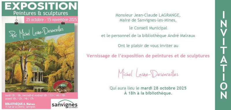 Intrigué par l’exposition d’un peintre et sculpteur à la bibliothèque André Malraux, il saisit son téléphone et cherche : Michel Lasne.