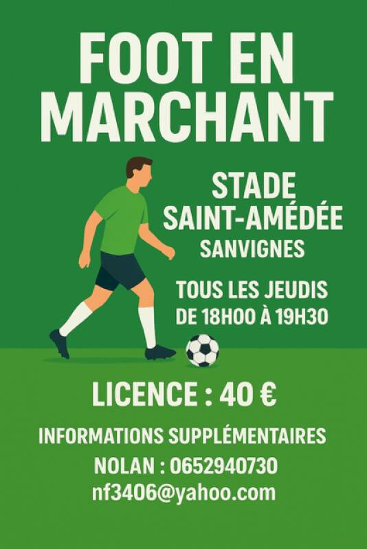 Nolan invite tous ceux qui seraient intéressés à venir tester le foot en marchant les jeudis jusqu’aux vacances de la Toussaint.