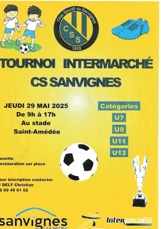 Le C.S. Sanvignes organise son traditionnel tournoi de printemps le jeudi 29 mai 2025, au stade Saint Amédée de Sanvignes, pour les catégories U6-U7, U8-U9, U10-U11 et U12-U13.