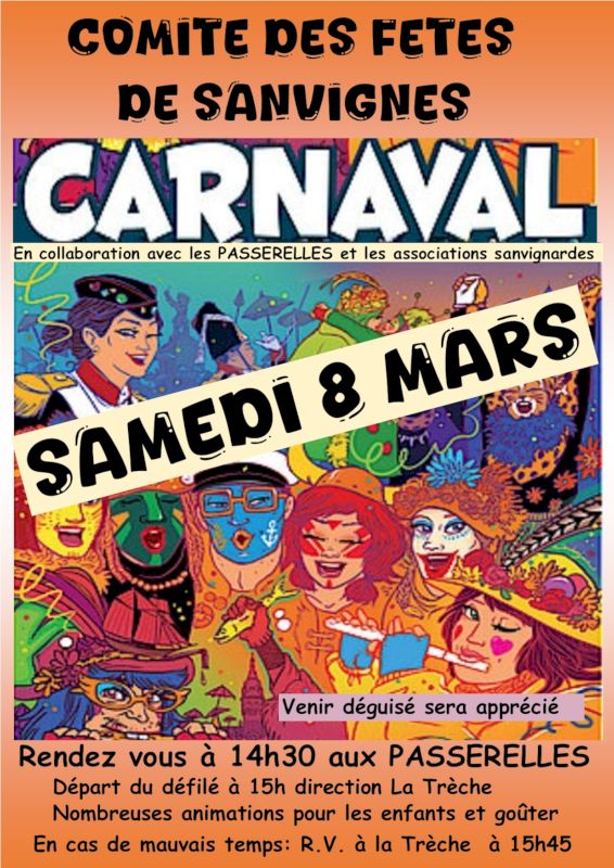 Le comité des fêtes de Sanvignes avec la collaboration des associations locales et des Passerelles, donne rendez-vous à tous ceux et celles qui aiment se déguiser et faire la fête.