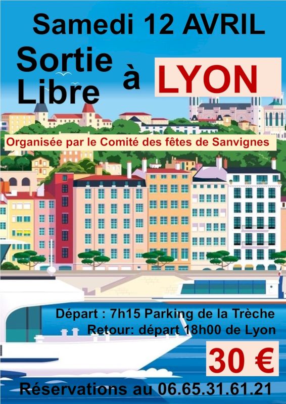 Samedi 12 avril, changement de décor, le comité des fêtes propose une sortie libre à Lyon. Toutes les informations à lire ci-dessous :