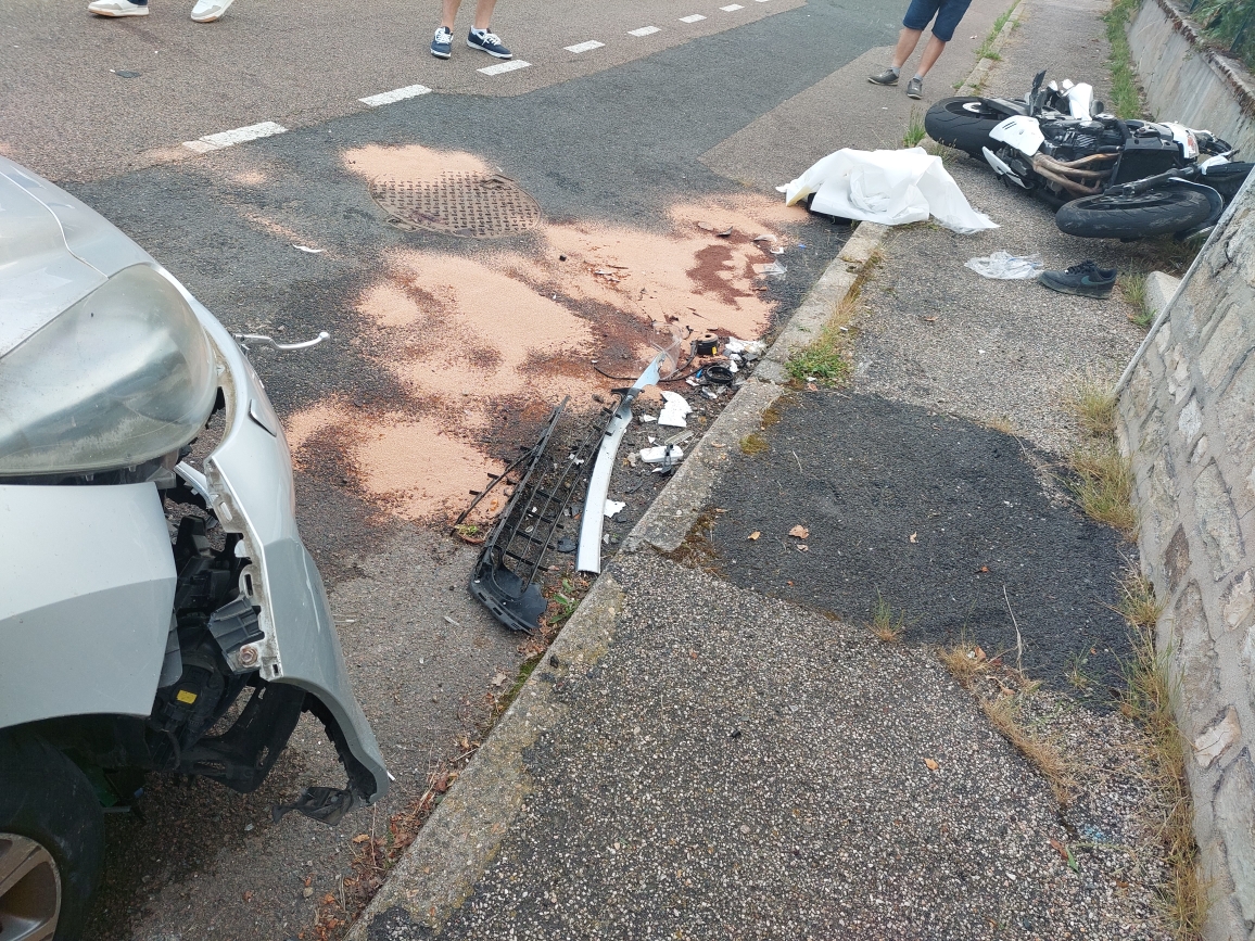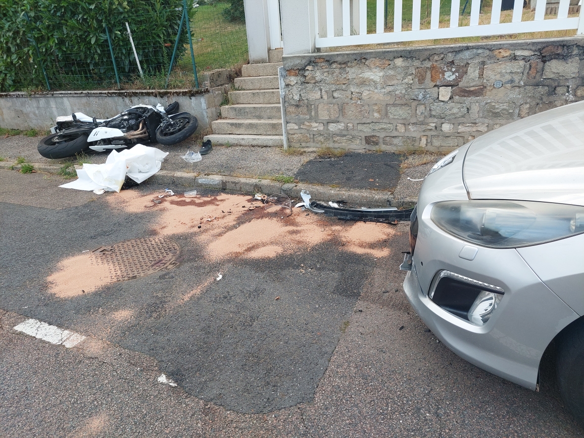 Vers 19h, ce dimanche 15 juin 2025, un accident s’est produit rue de la Garenne à Sanvignes. Au guidon de sa moto, un homme de 30 ans a percuté une voiture en stationnement. Le choc a été très violent.