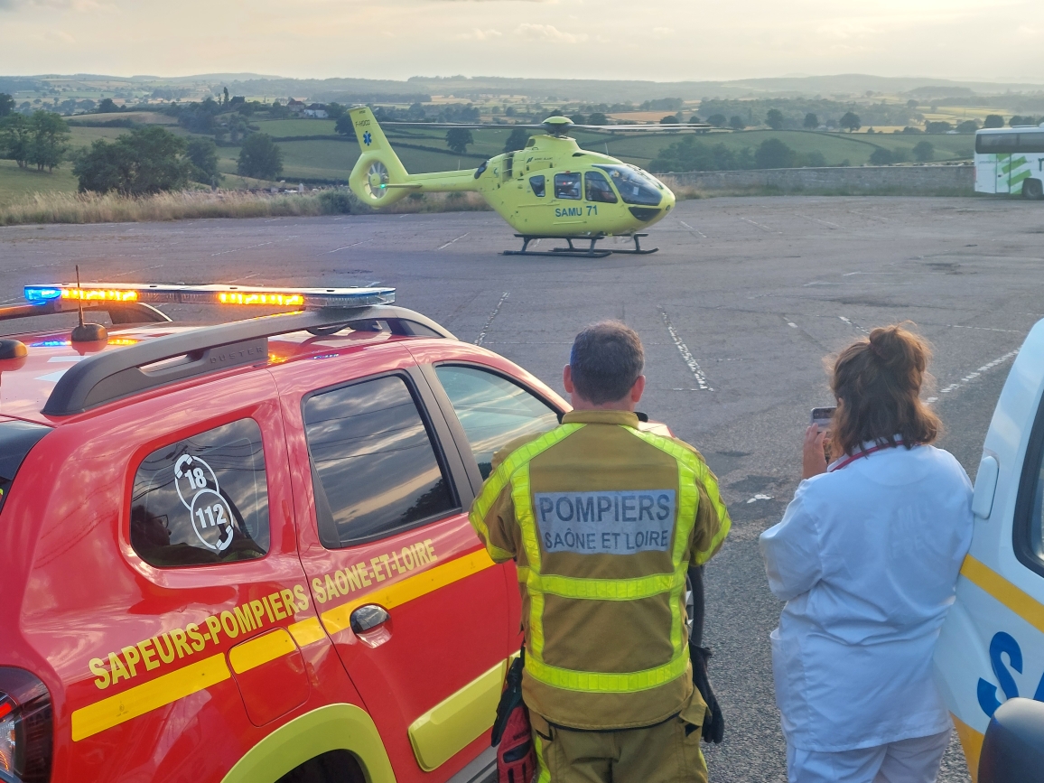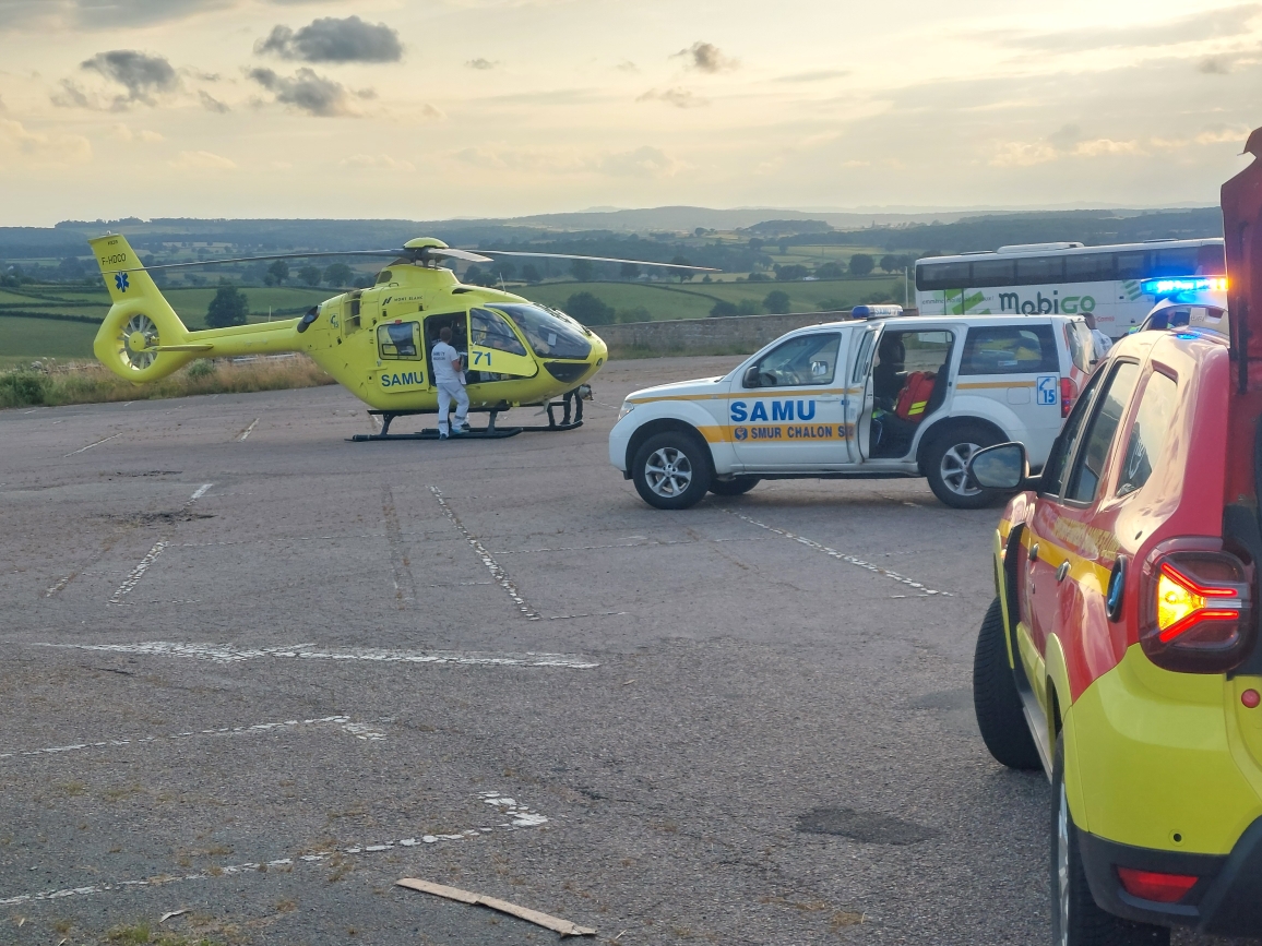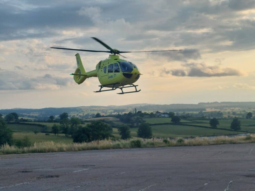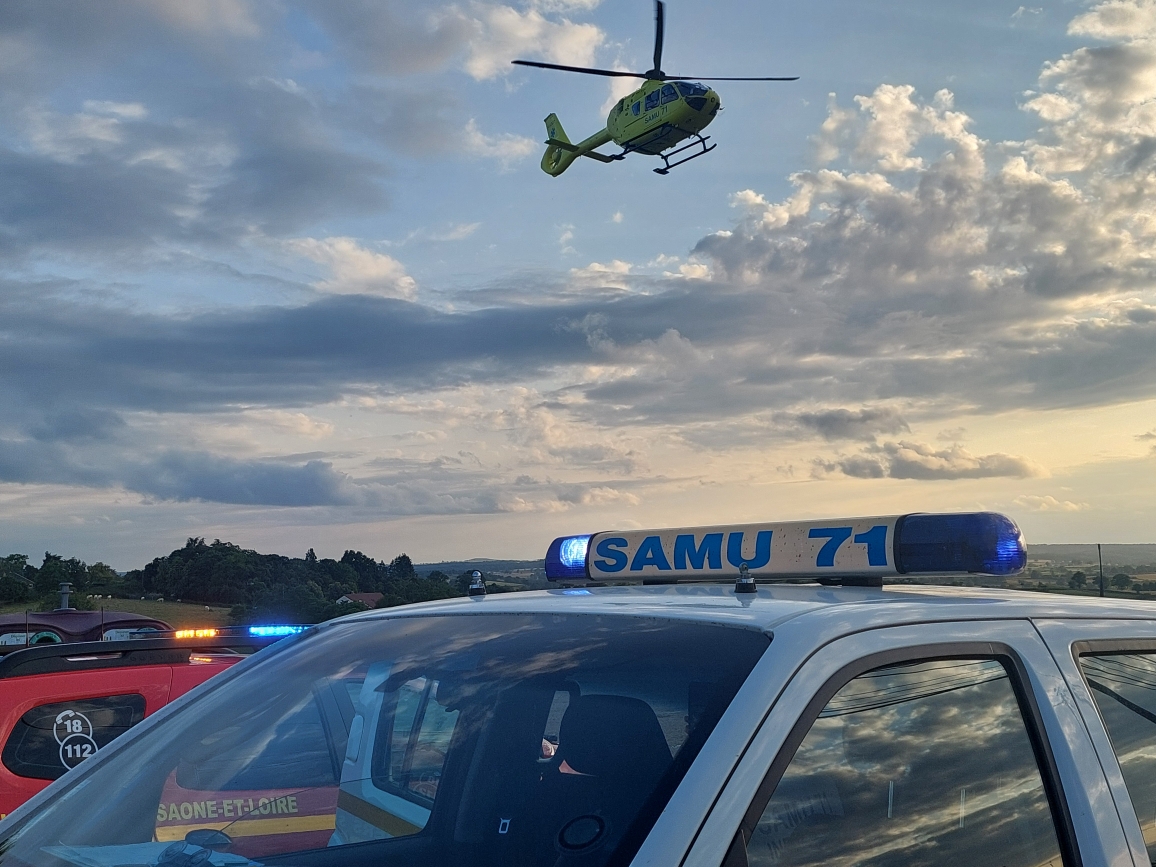 Les secours sont arrivés rapidement sur les lieux, les sapeurs-pompiers de Montceau puis le SMUR. Le motard, très grièvement blessé à la tête (il portait un casque) et à une jambe, était dans un état jugé critique. C’est pourquoi, il a été fait appel à l’hélicoptère du SAMU pour le transporter rapidement sur un hôpital à Dijon.