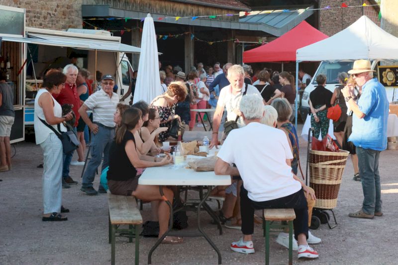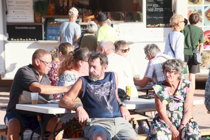 On vient au marché pour acheter des tomates juteuses ou un pot de miel doré, une bière artisanale bien fraîche, un morceau de fromage qui chante ou, soyons honnêtes, simplement pour trinquer entre amis… quand, tout à coup, surgit au beau milieu de la cour de la Trèche… un restaurant sorti d’un rêve !