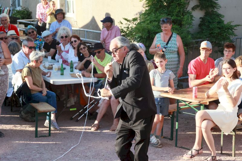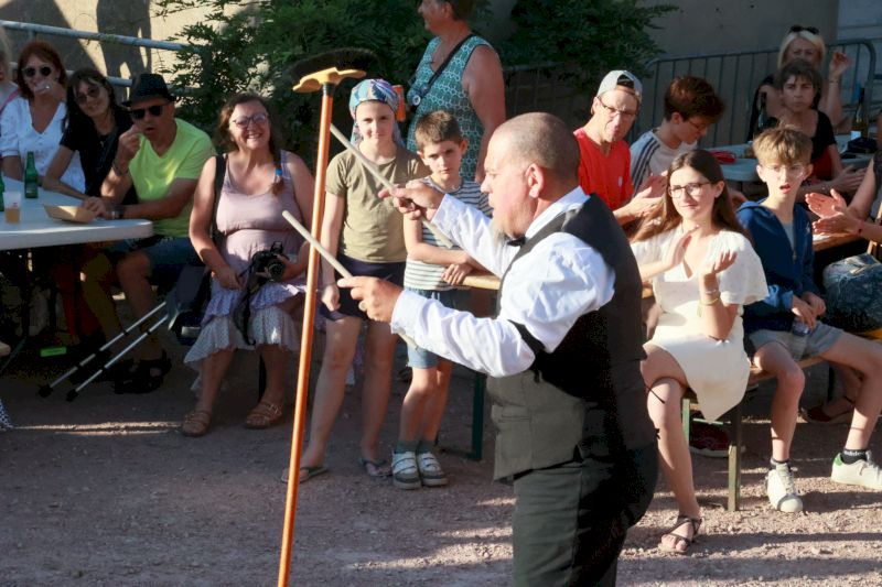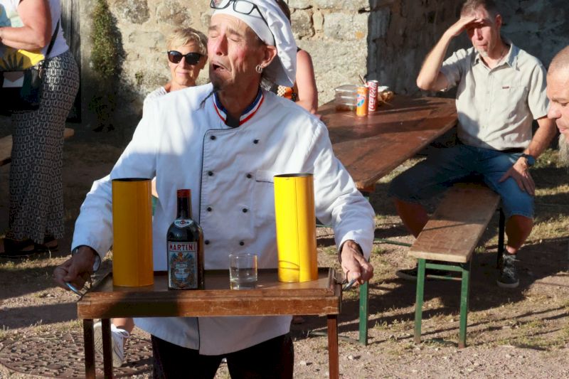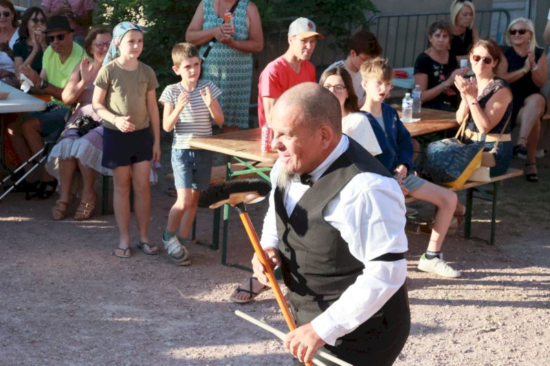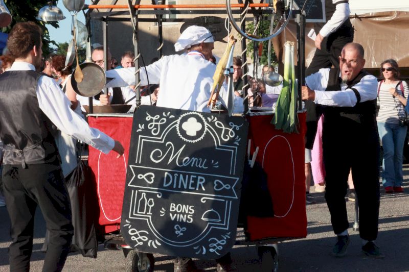 Ce fut un sacré Baz’Art que ce « grand restaurant » improbable, qui a fait éclater de rire le public et chanter les oiseaux perchés de la Trèche. La compagnie Elixir a ce talent rare de donner faim… de bonne humeur ! C’est même hautement contagieux. Avouez, qui n’a jamais rêvé d’un sommelier capable de faire apparaître trois bouteilles pour le prix d’une ? D’une omelette magique sans casser un seul œuf ? Ou de faire voler les tables d’un simple clin d’œil, balayer d’un doigt (et de la poussière, et la morosité) ?