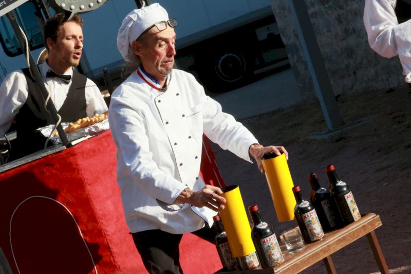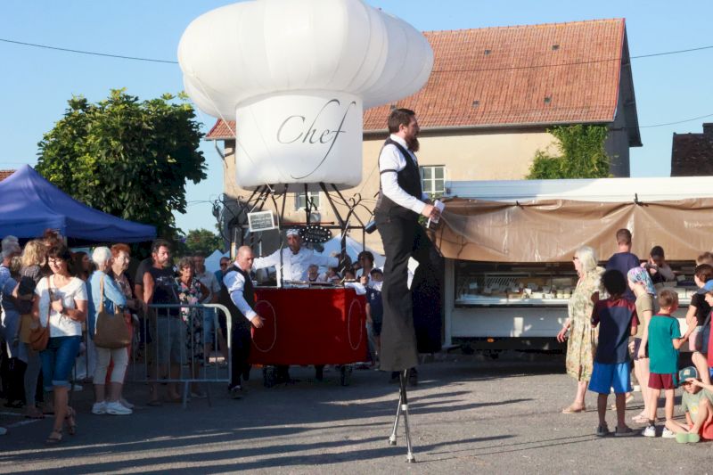 C’est ça, la magie du marché : ce doux mélange de concret et de complètement loufoque. Il fallait oser, au moment précis où le soleil commence à rougir de plaisir, faire apparaître une joyeuse bande de garçons de café virevoltants, un chef digne d’un roman fantastique, un cuisinier plus alchimiste que toqué, bref, une brigade un peu folle mais drôlement efficace, qui s’est pliée en quatre pour servir un festin… de théâtre.
