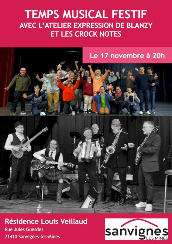 La résidence Louis Veillaud de Sanvignes sera le théâtre d’un temps musical festif avec l’atelier expression de Blanzy et les Crock notes. Un moment ouvert à tous.