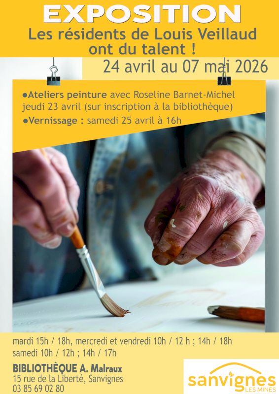 A l’occasion de l’exposition qui se déroulera à partir de 24 avril au 7 mai 2026, vous pourrez découvrir un atelier peinture le jeudi 23 avril avec Roseline Barnet-Michel à la bibliothèque de Sanvignes
