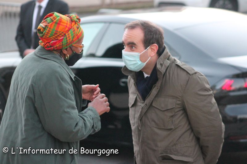 Sébastien Lecornu est venu masqué (covid oblige) à Montceau-les-Mines pour remettre à Christiane Mathos, les insignes de chevalier dans l’Ordre national du Mérite dans le salon d’honneur de l’hôtel. C’était en décembre 2021.
